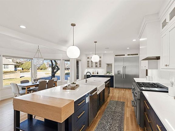 Step into a residence that exudes refinement and sophistication. Boasting 5 bedrooms, 4.5 baths, and an impressive 7,067 sq. ft. of meticulously crafted living space, this home epitomizes elegance at every turn. Priced at just $95 per square foot, this is a rare opportunity not to be missed. Nestled on .77 acres of secluded land, this exquisite home offers a serene escape while still being conveniently located. As you enter, you're greeted by soaring ceilings and an inviting front porch foyer, setting the tone for the luxury within. Beautiful oak floors and custom cabinetry adorn the main level, complemented by built-in speakers, a whole-home generator, and a central vacuum system for added convenience. The heart of the home is undoubtedly the chef's kitchen, equipped with top-of-the-line Thermador stainless appliances, including a 60” refrigerator, a 48” range with hood, and dual dishwashers. An expansive eat-in island, coffee bar, and gas fireplace create a space as functional as it is luxurious. The adjoining great room is a sight to behold, with a mirrored ceiling, fireplace, and access to the outdoor deck and pool area. Additional highlights of the main level include a light-filled solarium, a spacious library/great room with built-ins, and a convenient mudroom with built-in lockers. A main level bedroom with an ensuite bat