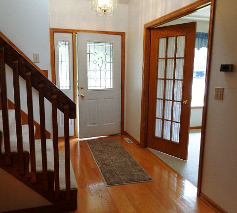 his great family 2 story offers 4 BRs, 3 baths, private back yard, mature trees, open floor plan and beautiful condition throughout. French doors lead to the living room with bay window, granite counters grace the huge kitchen with all appliances, a woodburning FP accents the FR and the loft/den is perfect for homework or a home business. A finished basement, screened porch, double attached garage and a backyard storage shed complete this awesome home within walking distance of the water park, middle school and senior high. $259,900. Call Sandy Bushman 955-7633.