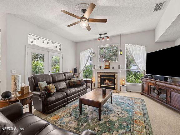 Located in desirable Julington Creek Plantation in NW St. Johns County, this spacious 5-bedroom, 3-bath home offers a flexible floorplan with both formal and casual living spaces—perfect for everyday living and entertaining. Nestled on a quiet cul-de-sac street, enjoy the privacy of a fully fenced backyard with a covered patio. Inside, you'll find a cozy gas fireplace, 10' ceilings, and the primary suite boasts a whirlpool tub, separate shower, and dual vanities. Key updates include a new 5-ton AC unit, roof replaced in 2019, and a whole-house generator powered by a 250-gallon buried gas tank for peace of mind plus landscape lighting and smart garage opener. This home combines comfort, style, and practicality in a sought-after community with tons of amenities including multiple pools, clay tennis courts, basketball courts, fitness center, skate park, playgrounds, ball fields and more. All this conveniently located near highly rated schools, shopping, restaurants, parks and beaches.