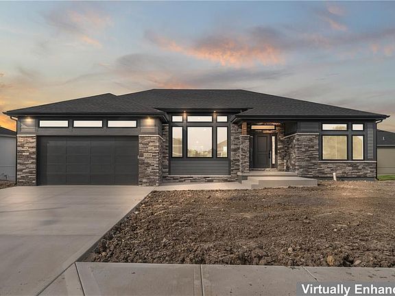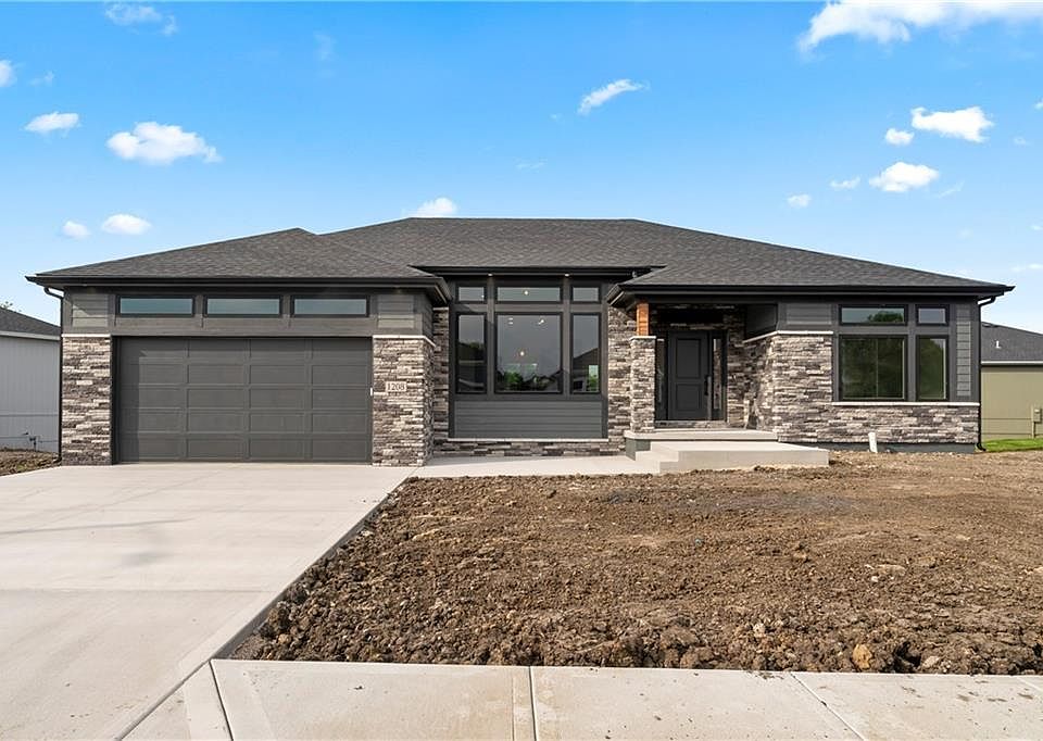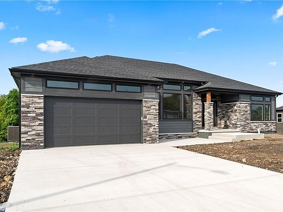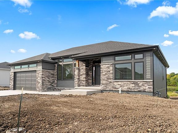 Super shape ranch home in Burris Ridge! The exterior has black windows accented with transom windows on the top including above the garage will set this home apart. Black shingles and black gutters will accent the gray & black stone on the front of the home. As you walk into the 18 x 14 living room with 11 foot ceilings, it opens to the kitchen and dining room with lots of windows across the back The kitchen features custom cabinets, a walk-in pantry, and a nice sized kitchen island with bar stool seating. The dining room off the kitchen has a sliding glass door out to the private deck overlooking the greenspace and pond to ensure you have no neighbors behind you. The bedrooms are separated with the master on one side and the secondary bedrooms on the other side. The master is laid out well and includes a vaulted ceiling with 4 can lights and ceiling fan. The master bath is tiled and has double vanities plus a tiled shower with a swinging glass shower door. The secondary bedrooms are nice sized, both with ceilings fans and a full bath in-between. The daylight lower level is ready to finish and is stubbed for a full bath. The home is complete and we can certainly build you one just like it or with changes to meet your needs.