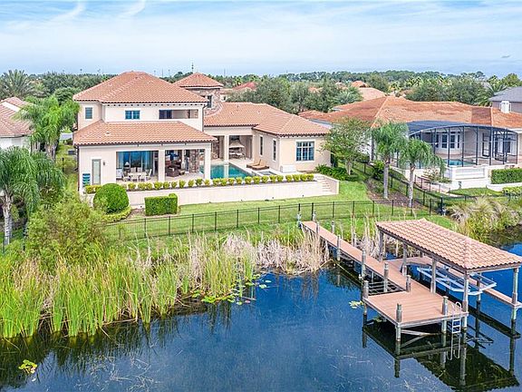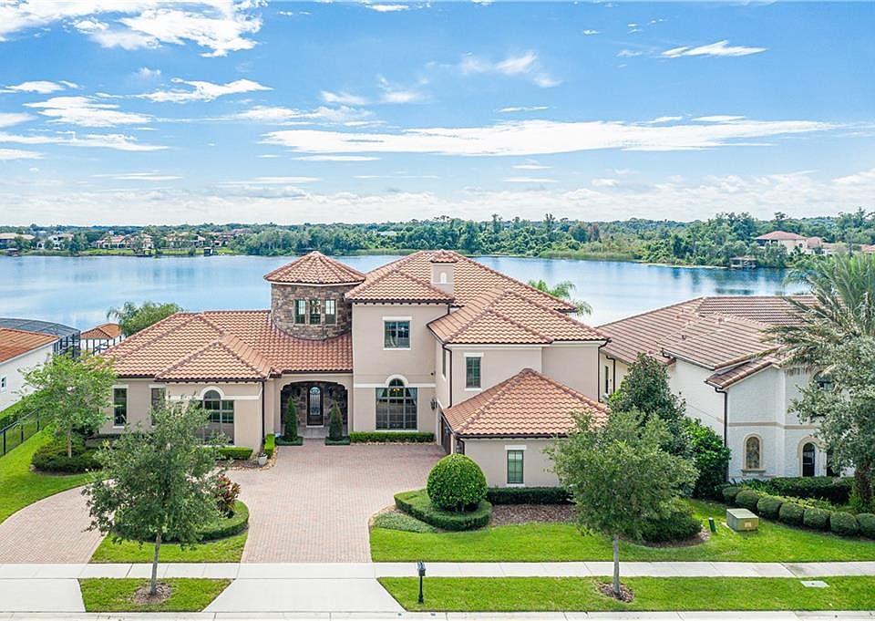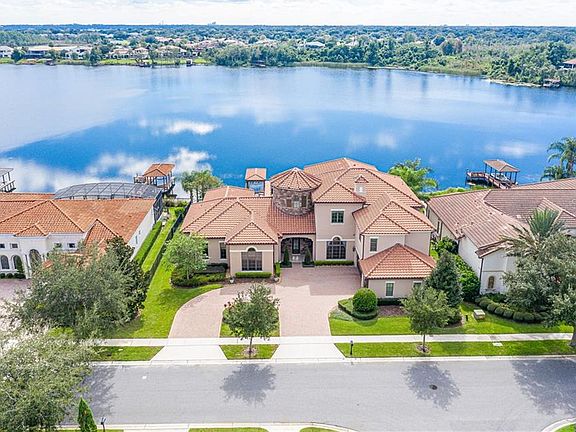 One or more photo(s) has been virtually staged. Please click Virtual Tour 1 for a 3-D Walk through. This home is located in the highly desired GUARD GATED Neighborhood, Reserve at Belmere. This wonderful LAKEFRONT ESTATE has unbelievable views overlooking Lake Whitney and Conservation area. With over 5900 square feet this home offers an open floor plan with 5 bedrooms including 2 Master Suites, a Bonus/Theater Room, Workout Room, Gourmet Kitchen with top of the lines appliances including WOLF Induction cook top, Sub-Zero Refrigerator, Miele Dishwasher, Custom Cabinets, Wine Cooler and lots of room. The family room off the kitchen area has 90 degree disappearing sliding glass doors that leads out to an amazing outdoor living area. Here you are going to find a gas fireplace a waterfall wall, summer kitchen, motorized screens and a large heated pool and spa that has a retractable pool cover providing safety. Also on the property is a covered boat dock and lift with Trek Decking. The home also has a Natural Gas Integrated HOME GENERATOR that can run the first floor essentials when power is out. Reserve at Belmere community is very sought after and offers community Tennis Courts, Beach Volleyball, Fitness Center and a Playground. Close to the town of Windermere where you will find weekly Farmers Market, Food Truck and Seasonal Events and convenient Upscale shopping, Dining, and of course the Theme Parks. This is a wonderful home in a very desirable location!! Welcome Home!