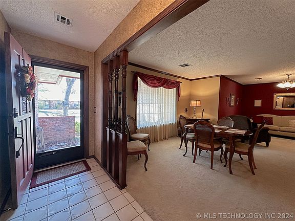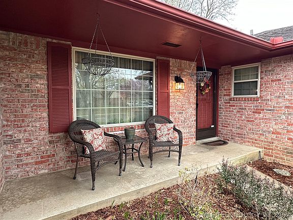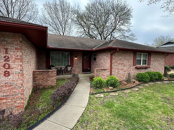 Lovely 1 Story, well maintained brick home in desirable East Bartlesville w/ NEW ROOF 2024 Prior to closing w/ acceptable offer! Room for the whole family in Spacious Kitchen with Eat-In casual dining, tile floor, built-in kitchen desk, and large picture window overlooking fully fenced back yard. Formal Dining/Living Combo plus 2nd Family Room w/ wood laminate flooring (2016), wood burning fireplace with gas insert, bookshelves, storage, insulated sliding doors w/ views to back yard. Master Bedroom w/ walk-in closet, has ensuite full bath, double sinks plus spacious vanity and Tuscan tiled shower. Full hall bath w/ whirlpool tub, tile floor. Convenient half bath near kitchen and laundry. Energy Efficient Vinyl windows throughout (2006.) Heating and Air Control Board replaced 2021. Gutter protection installed and all trees trimmed in 2023. Shaded back yard in active neighborhood with sidewalks for kids and pets, within 2 miles of Pathfinder Nature Trails and Sooner Park's Playground-Pond-Pool-Tennis-Pickleball-Golf Course-Festivals and Madison Middle School and Tri-County Tech Education Center. Just 1/2 mile to Ranch Heights Elementary School, shopping, banking, and US Post Office. Move In Ready, One-Level gem with Location-Location-Location!