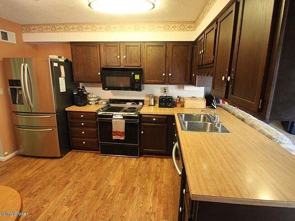 3 BR, 2 FULL BATH ALL BRICK RANCH WITH A PARTIALLY FINISHED BASEMENT BACKS UP TO THE WALKING TRAILS OF CREASEY MAHAN NATURE PRESERVE and is in the award-winning North Oldham County School District. You will find beautiful Pergo floors in the living room, formal dining room, entry, hall and kitchen. The family room with a gas fireplace, with logs replaced in 2016, is open to the eat-in kitchen with a STAINLESS FRENCH DOOR REFRIGERATOR AND DISHWASHER, both replaced in 2014. A newly painted deck with a pergola with a ramp (built in 2014) is off the family room. The detached 3-car garage with 1 garage providing a perfect space for a workshop with insulation and electric built in 2006.