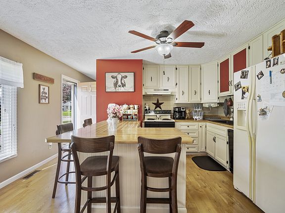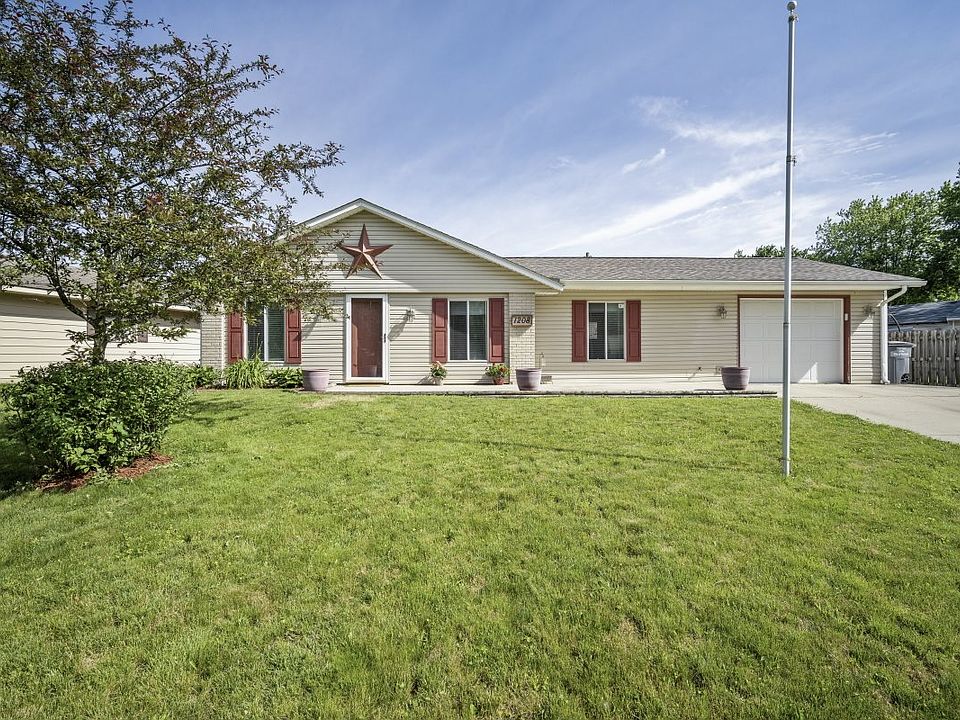 You will fall in love with the adorable ranch home. Open concept great room and kitchen area with a peninsula bar top eating area, lots of natural light. Sliding glass doors lead you to the back deck and fully fenced yard with a storage shed. Home also has a separate living room, 3 bedrooms, 1 full bathroom, curb appeal galore, large front porch, and an attached garage. New Roof including decking... put this at the top of your list!