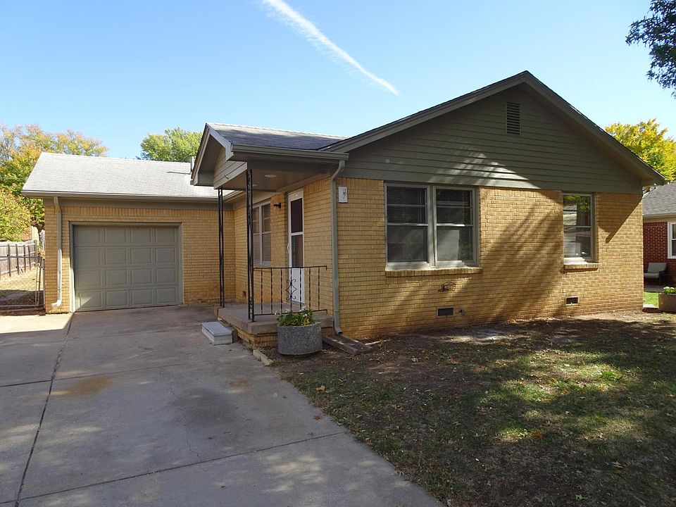 3 bed, 1 bath. Central HVAC. Hardwood, LVT, Tile floors Provided: Refrigerator, stove/oven, dishwasher, microwave. Washer, and dryer hook ups Attached one car garage with remote. Patio/deck in back yard. Covered front porch. Storage shed. Derby schools. Tenant responsible for gas/electric, water, garbage, recycle, and yard maintenance. No animals.