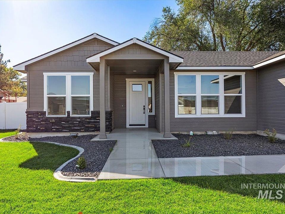 Welcome home to this brand new, move in ready 3 bedroom, 2 bathroom home in the Rivers Edge community of Fruitland. This open concept floor plan features vaulted ceilings, quartz countertops, stainless LG appliances, and a full tile backsplash that gives the kitchen a bright, modern feel. The split bedroom layout provides privacy, and the spacious primary suite includes dual vanities, a walk in shower, and a large closet. Enjoy the outdoors with a fully fenced and landscaped yard complete with a covered patio, perfect for relaxing or entertaining.  This home also includes a full builder warranty, energy efficient features, and a low $250 annual HOA. Conveniently located near schools, shopping, and dining, Rivers Edge offers the perfect blend of quality, comfort, and convenience.  Schedule your private showing today and take advantage of this limited time buyer credit.