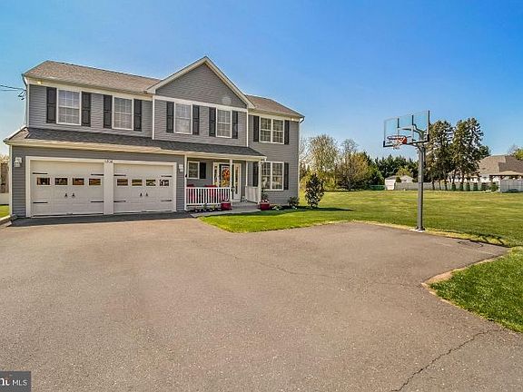 To See it, is to Want it! Just Like New! Pristine 4 Bedroom, 2.5 Bath younger Colonial sits majestically on a Burlington Township acre! Wouldn't you love having your morning coffee on the cozy front porch adorned by manicured landscaping? The extra long driveway allows multiple vehicles . The foyer is welcoming with its tile flooring and natural hardwoods on the staircase. The formal Dining Room with rich hardwood flooring is a superb place to entertain The gourmet kitchen is the heart of the home with it's crisp white cabinetry. granite counters, custom coordinating tile backsplash, ceramic tile floors, double sink, stainless steel appliances including a wine fridge, large double pantry, peninsula for stools with overhead pendant lighting. Adjacent breakfast area has a beautiful view of the lush grounds. The Family Room has handsome shelving, a ceiling fan, and Gas Fireplace, surround sound, and an included professionally mounted 70 inch TV. The Half Bath is gracious with its Pedestal Sink. Upstairs has 4 very generously sized bedrooms with ample closet space. The Primary Bedroom Suite has a walk in closet and ceiling fan. Admire the elegant Full Bath with double granite top vanity, tile flooring, tub, and shower. The Hall Full Bath also has a double granite top vanity, tub, and shower. There is also convenient upper floor laundry with included washer dryer. Sophisticated lighting and custom blinds throughout. The roomy 2 car garage has epoxy flooring. The basement offers many possibilities for storage or it can be easily finished with it's high ceilings. There is also a sump pump for your peace of mind. The custom rear deck measures 18 x 20 with it's gorgeous gazebo and it is all waiting for your backyard barbeque. Conveniently close to Rt 295, NJPA Turnpike, Burlington-Bristol Bristol Bridge, Philly, and Mercer County, and all military bases. Walk to the elementary school and park. There is also a 1 year home warranty! This exceptional property should not be missed. Come for a visit and see all the joy this home will bring.