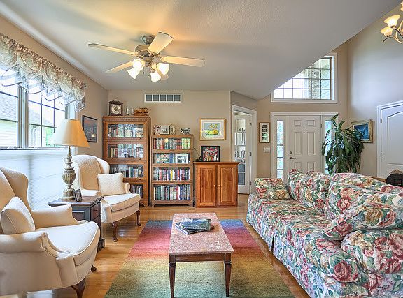 If you value a private backyard and living in Mahomet's Thornewood subdivision, then this could be your next home. Prairie style roof, open floor plan, and hardwoods throughout main level. Foyer features two story entry. Office/den located on first floor. Kitchen and gathering room have views of the fenced backyard with stone patio. Upstairs features 3 bedrooms and the large 4th bedroom is in the lower level. The basement also includes full bathroom, family, and game rooms. Master features walk-in closet, spacious master bath and backyard views.