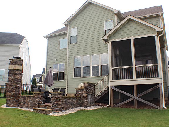 Call Nancy at 919-270-6044 for your personal viewing. Dream home for sale. Over 3100sqft custom built 4 bedroom/3 bath home with bonus and third floor office located in quaint Lakestone Village. Walk to everything. When you enter the home hardwoods grace the entire 1st floor except for the guest bedroom. Separate DR with chair railing and lots of light. Full Butler's pantry between DR and kitchen. Perfect for entertaining. Custom kitchen boasts hardwood floors. 42 in Maple cabinets with expresso glaze--high end comfort fit drawers. All stainless steel appliances with gas hook up behind stove in case new owner desires gas stove. Island bar with granite counters, tile backsplash, beaded board and custom coibels grace the island. Walk in pantry and custom drop zone off of the kitchen lead you to garage entry. Tucked in the backside of the home is your guest suite with full bath. Just off of the kitchen nook is your custom screened porch. Upstairs you will find a large Master suite with one of the biggest Walk In Closets you have ever seen. The trey ceiling add height and gracefulness to this lovely master bedroom. The master spa like bath has majestic bull nosed cultured marble counters at gentleman's height. The cabinets are Maple with expresso glaze. Custom tile surrounds the tub and separate shower. Down the hall are 2 additional bedrooms and a large bonus with WIC. All the upstairs bedrooms have WIC. The laundry room has cabinets and a clothes hanger. On the third floor is a quaint finished space with separate heating/air conditioning unit--perfect for an office. Home has great access to Hwy 401 and future I540 loop.