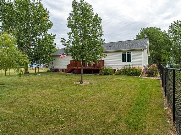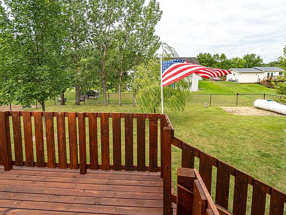 Peace and quiet of small town living mere minutes from GF. Beautiful large ranch style home with many updates including: New Furnace & A/C, Newer Roof, New flooring, Newer Fence, Updated bathrooms. Large Kitchen open to dining & living room. Lg master bedroom w/a walk-in closet and a pass thru bath. Huge family room with Knotty Pine walls! Potential 4th bedroom. Deck to large fenced yard.