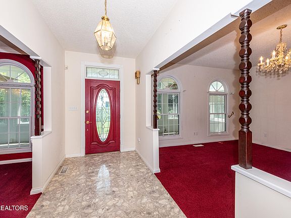 The enclosed sunroom is great for taking in stunning mountain views, while the separate gazebo offers another spot to unwind year-round. The large utility room adds practicality, and a two-car pull-through garage provides extra convenience.