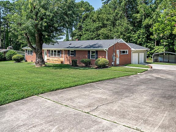 Lovely well-maintained brick ranch living large on nearly half-acre. All main-level living tucked into lovely quiet section of Red Oak with mostly larger lots and architecturally interesting mid-century homes. Quick access to RTP, RDU, NCCU and Downtown Durham. Large primary suite with separate step-in shower and soaking tub. Major systems replaced since 2020 include roof, windows, HVAC and one of two water heaters. Kitchen updated with quartz counters, SS appliances and refaced cabinets. Hallway full baths recently updated. New carpet in primary suite. Spacious deck for enjoying peaceful morning coffee outdoors and evening stargazing. Tree buffer adds privacy along back property line. Huge two-car garage with extra storage as well as large detached carport. Plenty of space inside and out, meaningful updates and easy access to all things Durham and Research Triangle Park.