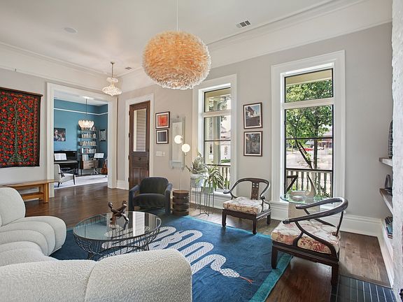 From the moment you step through the French front door, the dramatic 12' ceilings and custom mouldings will steal your breath away. Renovated to the studs in 2016 and winner of the Historic Preservation Award, this stunning historic home asks no compromises for modern living with graciously flowing living areas and elevated, timeless finishes. Indulge in the best of southern living from the dreamy side porch overlooking the pool and limestone patio. The primary bedroom, guest bedroom and office are on the main level, with two bedrooms, full bath and bonus room upstairs. The light-filled carriage house apartment offers vaulted ceilings, clever storage and off-street parking.