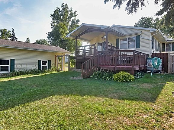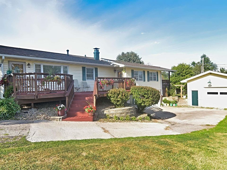 Southside ranch style home offers 2 decks, 4-5 Bedrooms located within walking distance to schools and offers Livingroom with fireplace and walkout to large multi-level deck that is partially covered. Private back yard features garden, swing set and Hammack. Double tuck under garage and extra-large, detached garage with storage. Tons of storage in the large kitchen and offers formal dining room with hardwood floors, 2 full baths with shower and 1/4 bath, 2 Central air units, 2 furnaces and plenty of storage. Must See!