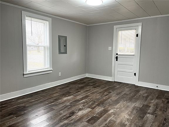 PERFECT for that first time homeowner, downsizing, or investor! Completely remodeled & move-in ready! Enter into the living room through the covered porch. New luxury vinyl plank flooring & electrical fixtures throughout. Wonder into the brand-new kitchen complete with new shaker style cabinetry, new countertops, new wave ceramic tile backsplash, & new stainless-steel appliances. The bathroom remodel included everything from new drywall to new tub, surround, & vanity. Off of the kitchen enter into the laundry room. Nice sized bedrooms off to the back of the house. Keep your car out of the weather in the detached garage while still having plenty of space for storage in the workshop area or unfinished basement. Large open backyard for your enjoyment.