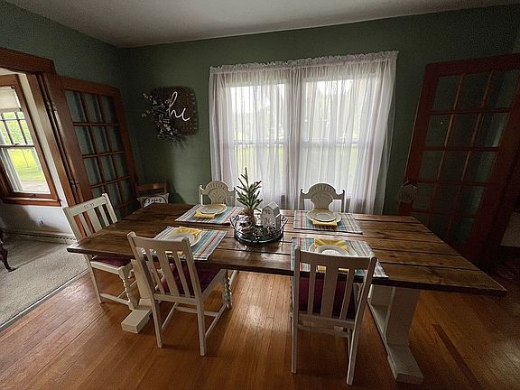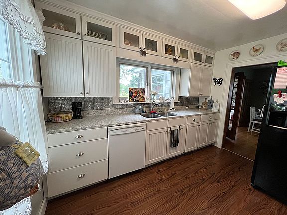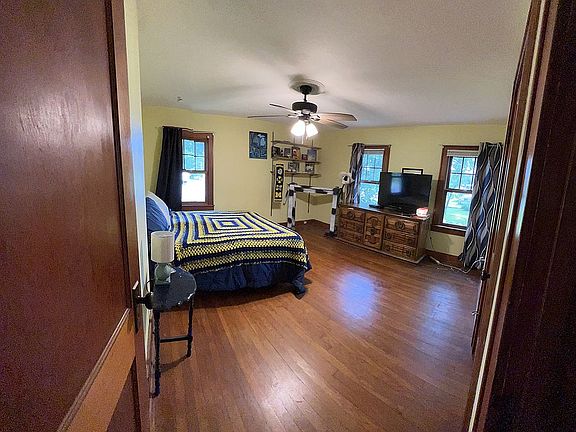 Charming farmhouse on 1.8 acres has some original 1939 features like wood floors, wide baseboards, and a classic fireplace with its updated kitchen and baths. Formal dining room plus a den and living room allow rooms for everyone. With a full basement.