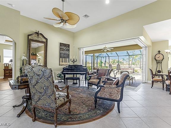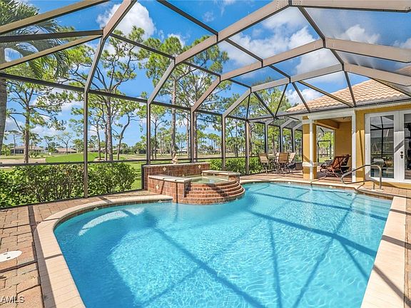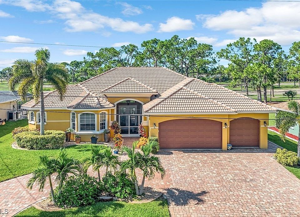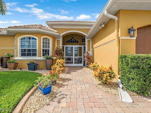 CALLING ALL GOLFERS – 4 Bedroom, 3 Bath, 3-Car Garage, Pool Home with Desirable Southern Exposure and a Great View of the 5th Hole on Palmetto Pines Golf Course! Located in Southwest Cape Coral, this Updated Pool Home is Move-in ready, has Beautiful Landscaping, Circular Paver Driveway, and Great Curb Appeal. The Decorative Double Front Doors welcome you into this Spacious Home with an Open Floor Plan, 2,430 sq ft of Living area, and High Ceilings. Zero Corner Sliding Glass Doors expand your Living Area into the Large Lanai and Screened Pool area with a Spill-over Waterfall Spa and Outdoor Kitchen, perfect for entertaining. Relax in your own Private Oasis, whether you are swimming in your Heated Pool, unwinding in the Spa, or just enjoying time with friends and family, all while taking in the Amazing Golf Course View. You will Love the Updated Kitchen with Gorgeous Granite Counters, Plentiful Wood Cabinets, Huge Island, Breakfast Bar, Pantry, and Breakfast Nook. The Owner’s Suite has a Tray Ceiling with Accent Lighting, Dual Vanities, Garden Tub, Big Shower, Custom Closets, Linen Closet, and a combination Bidet and Toilet. Additional features include Tile on the Diagonal, Laminate in the Bedrooms, New Pool Pump August 2024, New AC 2020, New Water Heater 2017, Water Softener 2021, Walk-in Closets in 3 of the 4 Bedrooms, Recessed Lighting, Surround Sound, Built-in China Cabinet with Under Cabinet Lighting, Central Vacuum, Laundry room with Utility tub, Pool Bath, Built-in Cabinets and Sink in Garage, and Pull-down stairs for attic access. The Kitchen, Living room, Family room, All Bedrooms, and the Lanai are equipped with Ceiling Fans. One Bedroom is currently utilized as an Office. The Home is Storm Protected with Electric Roll-down Shutters and Impact Resistant Windows. This Home has had NO flooding. Palmetto Pines Golf Course has No membership required and No HOA fees, you can pay as you play. Ideal location close to Dining, Shopping and Beaches, with easy access to Fort Myers, RSW International Airport and the Punta Gorda Airport. ALL UTILITY ASSESSMENTS ARE PAID IN FULL AND NOT IN A FLOOD ZONE! Make an Offer Today!