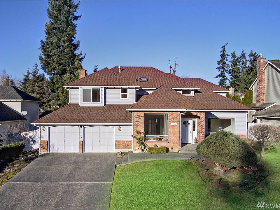 Stunning home in the Alderbrook community. Brick accent front porch enters you into an open entry with wood floors and soaring high ceilings. Spacious great room, dining room with cathedral ceiling, and molding accents. Large kitchen with an island provides lots of counter/cabinet space. Living room with a beautiful brick fireplace and lots of shelving. Bonus room and half bath down, 4 beds up. Large master suite with 5 piece bath and the perfect size yard for all your needs. Come take a look!