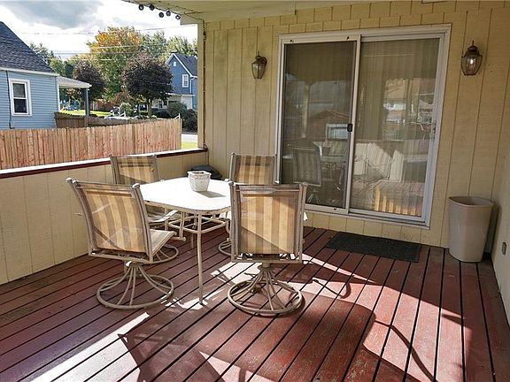 Enjoy mornings on the front porch. Smartly tiled entrance opens up to the carpeted living room with large picture window. Fully remodeled eat-in kitchen (2004) with center island and bar to watch the chef whip up dinners. Newer beveled sliding glass door off the dining area leads to a covered patio for entertaining. Off the kitchen is an office with a spacious utility closet and pantry. Upstairs sleeps 3 well-sized bedrooms. The master bedroom features a walk-in closet and is large enough to comfortably hold your king-sized bed. A spacious full bath with room to move displays a charming cast iron pedal steel tub and carousel shower. Rec room and bonus room or possible extra bedroom, and freshly dry locked laundry room complete the basement. Attic provides extra storage. Original hard wood floors are underneath flooring. Electrical box, some electric updated and hookup for garbage disposal installed in 2004 during kitchen remodel. Roof was replaced in 2003. Additional parcel adds space between you and your southern neighbor. Garage on the backend of property was used as a shed. Stop out and see the potential of this Home or Investment Property today.