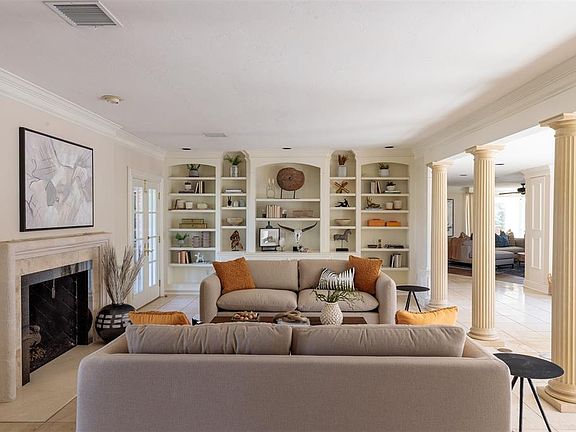 Introducing 1208 Sherwood Lane, a distinguished architectural retreat, overlooking Grand Boulevard Park in the heart of Nichols Hills. Sprawling, meticulously landscaped grounds and enchanting gardens welcome you inside this masterfully designed residence. Crafted with incredible scale and unsurpassed quality, this extraordinary property exemplifies sophistication and indoor-outdoor living at its finest. A gracious foyer, complemented by exquisite millwork, bespoke tile selections, and contemporary lighting, effortlessly punctuates the home’s impeccably curated interiors. A stunning, cast stone fireplace anchors the sunbathed formal living room, featuring handcrafted bookshelves, and phenomenal floor-to-ceiling windows and doors, offering a seamless connection to the picturesque outdoor living spaces. The gourmet kitchen is well-equipped with stone countertops, commercial-grade appliances, abundant storage, and vast culinary prep space. Designed for entertaining, the alluring formal dining room is ideal for both intimate and lavish gatherings. The fireside family room boasts timeless wood floors, custom built-ins, an adjoining wet bar with beverage refrigeration, and offers direct access to a secluded terrace, providing a rare combination of seclusion and tranquility. The brilliantly conceived and relaxing primary suite boasts patio access with commanding views of the park-like grounds, two boutique-inspired closets, and a well-appointed ensuite bathroom. The expansive secondary primary suite offers functional storage, a charming seating area, and a thoughtfully positioned ensuite bathroom. Additional amenities include an oversized kitchen pantry, two powder baths, and a rear-entry garage. The idyllic, manicured backyard creates a private sanctuary complete with charming patios, an outdoor kitchen, a two-sided stacked stone fireplace, mature landscapes, and rolling verdant lawns. A truly rare offering in one of Nichols Hills’ most coveted enclaves.