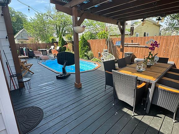 This amazing home has been remodeled from top to bottom including an Oasis for a backyard. Inside you will find an open concept living room, formal dining room and eat-in Kitchen as well as an enclosed back porch that will lead you out to the backyard. Step out onto a large deck with a built-in pool that is ready for all your next gatherings. Pool and large deck were just built this past summer and has been very well taken care of. Sit out under the pergola and enjoy the seasonal weather changes in your private fenced in backyard. There is a full bathroom off of the enclosed back porch for added convenience for guest. Newer flooring throughout, beautifully decorated and newer appliances that will stay with the home. Upstairs you will find a large Master Suite with a large attached full bathroom. Lots of storage in the master closet. Walk up attic space could be finished out. Take a look today and get a home that is ready to move in and enjoy