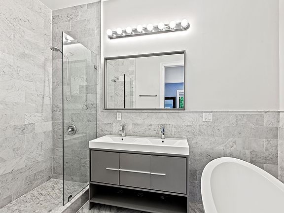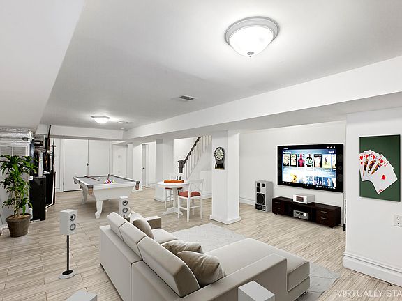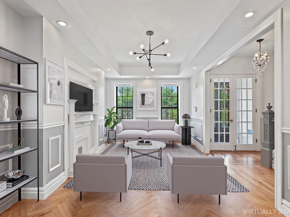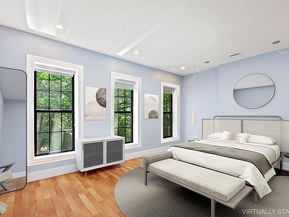 Photos are virtually staged Introducing 1208 Sterling Place, a recently renovated 2 family town home, situated on a charming block in the historical Crown Heights section of Brooklyn. Beyond its 19-foot wide, slab stone facade is an inviting layout featuring approximately 10' high ceilings, opulent hardwood flooring including inlay details, three original fireplaces, custom chair rail moldings, recessed lighting and upscale lighting fixtures. Town home also features brand new electrical and plumbing throughout. On the parlor floor, an airy living and formal dining area along with a powder room and an abundance of natural light from large exposures, makes for a warm welcome to an owner's duplex. In the rear of the parlor floor is an accommodating, eat-in kitchen, featuring stainless steel appliances with dishwasher, a large center island with deep sink and gleaming marble counter tops, as well as generous white cabinetry. The chef's kitchen is drenched in sunlight from 2 large exposures-a graceful transition from the kitchen to cast iron deck overlooking a large and secluded garden area.While the parlor floor features inviting common areas, the upper level of the owners' duplex boasts a spacious 3-bedroom, 2-bathroom layout, featuring a spacious primary bedroom with three large exposures and an en-suite bathroom with his and her sinks, large glass shower, and a separate deep soaking tub. Live comfortably while generating rental income with a recently renovated, 2-bedroom, garden level apartment, finished with the same style and grace as the owner's quarters-open airy living area, new kitchen and bathroom, as well as recessed lighting, custom moldings, and hardwood floors throughout. Additionally, there is a separated interior entrance from the owner's unit to the finished basement featuring recessed lighting making for an exquisite owner's triplex. This timeless townhouse boasts a spacious layout within 2 blocks of endless venues and nightlife on Franklin Avenue, such as: The Crabby Shack, Franklin Park, Mayfield, Chavela's, and many more. Also situated in close proximity to the A express train at Nostrand Avenue and Kingston - Throop station. Overflowing with charm, 1208 Sterling Place presents an ideal living arrangement for future owners and occupants alike.