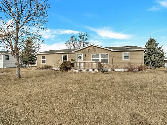 Call or Text Listing Agent - Kade Welfl - The Real Estate Center of Spearfish - 605-210-0010 for more information. This spacious home offers a large open floor plan with an exceptional master bath, walk in closet, covered deck and fenced backyard. The property is on the edge of the subdivision with easy access in and out. This property is on a rented lot. The home has been updated with new flooring and maintenance free siding. Buyer is responsible for verifying all information on this MLS document.