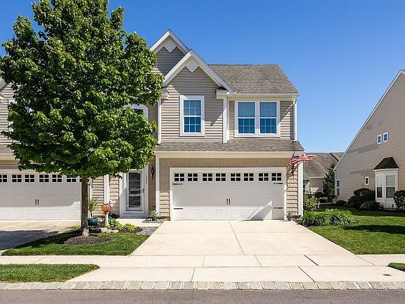 Welcome to Legacy at Cape May, a beautiful 55+ community! This pristine 3 bedroom, 2 and 1/2 bath end-unit is completely upgraded and has so many amenities! As you enter the 2-story foyer, you can’t help but notice the beautiful wood staircase and gorgeous wainscoting. Wood-look plank flooring will lead you to the dining room and then on to the great room, both with custom wood trim, custom baseboard, and cathedral ceilings. Whether you’re watching television or cozying up by the fire, the floor to ceiling shiplap detail will surely catch your eye. The sunroom is bright and airy, with wood detail on the ceiling, and doors leading out to the paver patio. Now let’s talk about this kitchen! Granite countertops, custom built cabinets with soft close doors, full extension pull out drawers rather than shelving, upgraded appliances, and a large pantry. The primary bedroom is on the first floor and has a tray ceiling with crown molding and indirect lighting! The ensuite bathroom has a large tile shower and double sinks. As you make your way upstairs to the loft, you will find two more bedrooms and another large bathroom. In this bathroom the shower and toilet are in a separate room from the double sinks, so multiple people can be getting ready at once. This home is a must-see! Don’t forget to stop by the clubhouse, pool, shuffleboard and bocce courts after your tour!