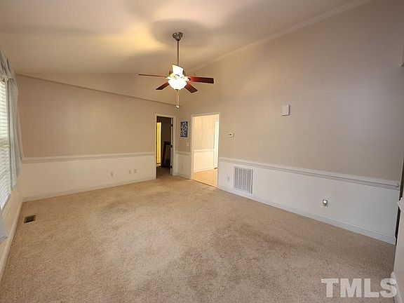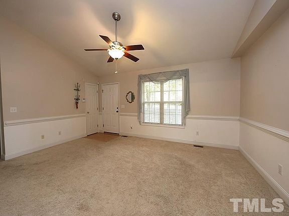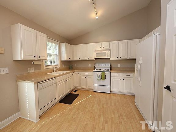 .83 acres- wooded and wooden fenced in backyard! Split bedroom plan, Great Room with vaulted ceiling & fan, Large MBR, Master Bath has double vanity, tub/shower combination,White Cabinets in Kitchen/Laminate floors in Kit/Dining Area, Deck, Smooth ceilings, Easy Commute to Downtown Durham, Treyburn Corporate Park & RTP!