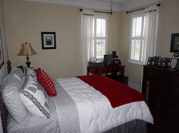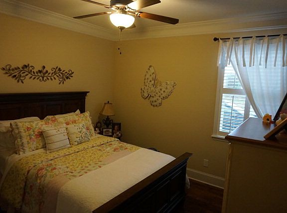 This home on a single level floor plan is open and well kept. Beautiful real hardwood floors throughout all the main living areas and in the master bedroom. The great room is wired with the TV over the fireplace back to a closet for no unsightly cords. Full tile baths make this home easy to clean and gorgeous. The master has trey ceilings and an open view to the beautiful backyard. The kitchen is spacious with a sitting bar, granite counter tops, and lots of custom cabinet space. The fenced in backyard has a cedar trellis, a site built storage building and a putting green! There is a separate office/formal living room and a dining room at the front of the house. The front porch is huge and perfect for a rocking chair. The lot is in the cul-de-sac. It is easy to show and very clean.