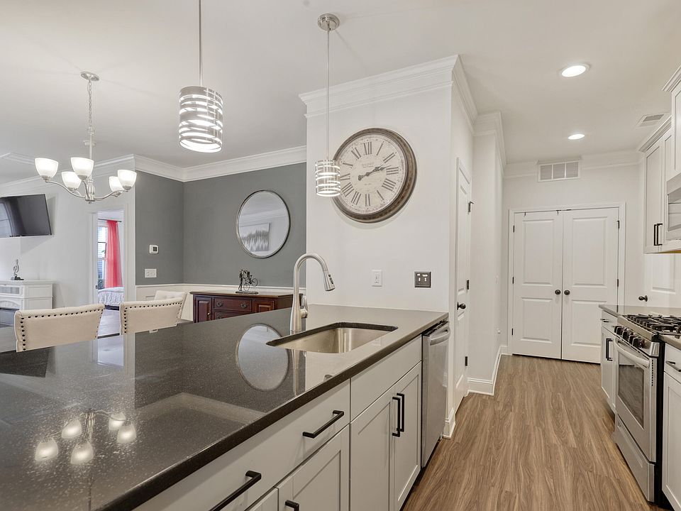 Come join the splendor of Traditions in this well maintained 4 bed, 2.5 bath, 2 story townhome with an bright open floorplan with tons of natural light. Enjoy one-level living with the spacious 1st floor primary bedroom suite including a closet system in the walk-in closet. Luxury vinyl flooring on both main and second floors. Oversized loft space for all your entertaining enjoyment plus three secondary bedrooms upstairs and a full bath. Storage galore throughout the home. Two piece crown molding and finished rear load 2 car garage. Convenient to the ever expanding shops and eateries along Rt 98 and surrounding Wake Forest.