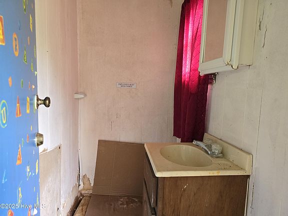 bathrooms. Tax records show 3 bedrooms with 1 and a half bathrooms. Take caution when entering.