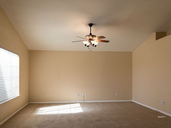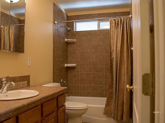 This home was built by contractor for himself. Lots of extra insulation and sound board , tile floors in kitchen and baths. Three large bedrooms and two full tiled baths, jetted tub in master bathroom. Master has large walk in closet and slider to full length covered patio with fans. Stove ,Refrigerator, dishwasher, microwave. Extra sound board for an extra quiet home. Built in sound system. Extra efficient AC unit on ground for low bills. . Vaulted ceilings in living room. Over sized garage has lots of cabinets and sink.