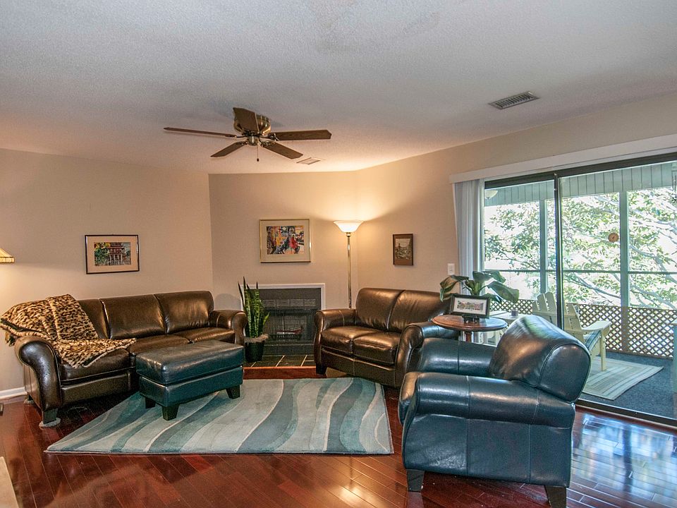 Step inside to see the pride of ownership in this beautifully UPDATED condo. The kitchen has been updated with granite counter tops and stainless steel appliances. Beautiful hardwoods throughout the kitchen, dining room, living room and bedrooms. Master bathroom has also been updated with the new vanity. New HVAC installed in 2012. Relax on the screened in porch while enjoying views of the pond. Or soak up on the sun on the front deck. You will fall in love with this fabulous upstairs, end-unit condo that has only had one owner since construction. HOA only allows for owner-occupants, please discuss with agent.If square footage is important - MEASURE!!