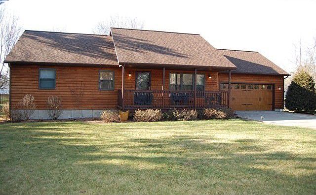 Move in ready 3 bedroom, 2 bath ranch home located close to schools and park. This home has many upgrades including tile flooring, newer carpeting, Corian countertops, amish built cabinets and Kenmore appliances. Enjoy the built-in speakers in the kitchen, master bedroom and outside on the back deck. There is a large 2-car garage that is fully drywalled, has a finished epoxy floor and is also wired to the audio system. Large professionally landscaped yard with deck, patio and storage building.