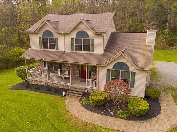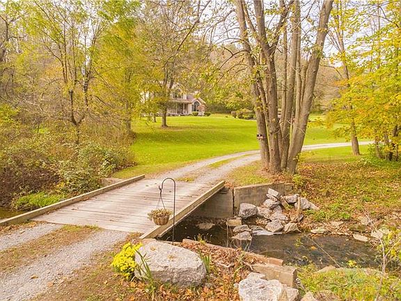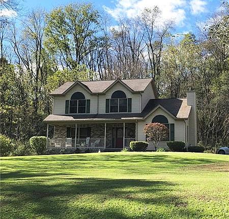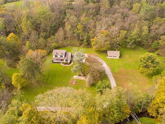ATTN: NATURE LOVERS! STUNNING HOME PERFECTLY NESTLED ON 16 PRIVATE ACRES! An abundance of rare trees, meandering stream & wildlife right outside your window. Enjoy your coffee on the covered back deck, or watch the deer from your front porch swing. The interior is just as inviting. Under cathedral ceilings, a fireplace burns both wood as well as propane - adding a cozy feel to the sprawling living room. An oversized center island adds to the already-generous amount of counter space, while the first-floor laundry provides additional convenience. A flexible layout offers a formal dining room/office/playroom. Retreat to the master bedroom where you'll find a spacious full bath & walk-in closet. A potential 4th bedroom is found in the finished basement. This space can easily be used as a mother-in-law suite - offering a kitchen area, full bath & expansive family room. Enjoy privacy of country living, efficiency of all-electric, public utilities & the most convenient of locations!
