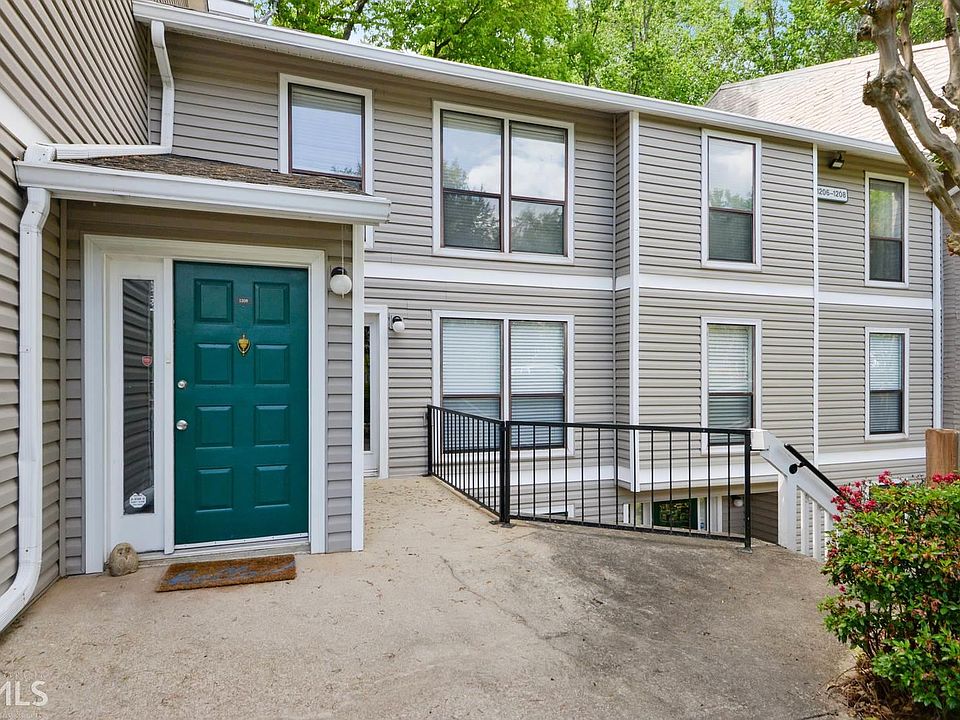 This home is updated and immaculately maintained. Beautiful granite counters in the kitchen and master bathroom. Stunning wood floors. Kitchen floor looks like marble. Spacious family room features gas logs, gas starter and built in book shelves. TV room/sunroom. Large master bedroom features three closets! O pen floor plan. You'll spend much of your time on the relaxing screened porch. Largest floor plan in the complex. Healthy HO A with strong reserves; FHA approved complex. Great location - near shopping, restaurants, highways and close to the new Braves stadium / Battery Park area.