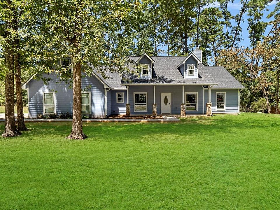 Stunning home in Lake Conroe Forest! Oversized corner lot in wooded neighborhood near the Lake! Inviting entrance with large front porch and oversized tandem garage. Flowing split plan with high ceilings and all bedrooms on first floor. Game room/bonus room with converted closet/office space on second level. The open concept island kitchen features granite counters with stunning tile backsplash. Formal dining and large living area are perfect for entertaining. The Owner suite features a beautifully updated private bath with dual vanities, separate oversized shower and Jacuzzi tub. Dual owners closets. Relaxing covered backyard living space. Neighborhood amenities include boat access, lakes/ponds/parks, and walking trails. Zoned to Montgomery ISD schools. Call today!