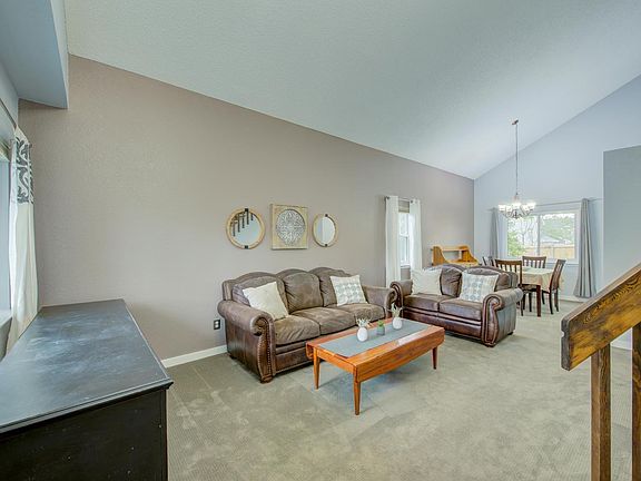 As you walk up to this home you will see the pride of ownership shine throughout. Once inside you are greeted by vaulted ceilings and large windows that allow natural light to shine in. On the main floor you have the kitchen, living room, dining room, laundry, and a half bath. The large kitchen has beautiful granite counters, stainless steel appliances, and ample storage space. Upstairs you will find the large master bedroom with its own bathroom and walk in closet. There are two additional bedrooms along with another full bathroom. The basement has a bonus room and another half bath. Outside the home has a large deck and a fully fenced in backyard. This energy efficient home comes with solar panels and LED lights throughout! New paint and new carpet on the main level. This home is a must see!