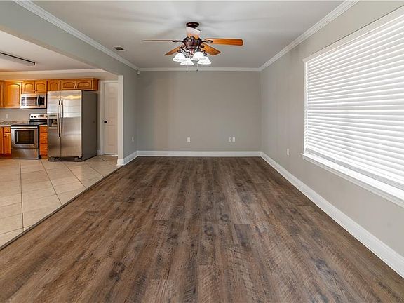Beautifully renovated home on a corner lot. The open plan kitchen features stainless steel appliances and plenty of counter space and cabinetry for storage. This home has a large master suite with large walk-in closet. The master bath features a large tub/shower, double sinks, and a linen closet. One guest bedroom is amply sized and has a half bath with a spacious closet and a linen closet. Floors are ceramic, laminate, and carpet. The covered front porch is spacious and great for sitting. There is also a cover patio on the rear of the home for a little more privacy. The lot to the left of the property is for sale by same owner.
