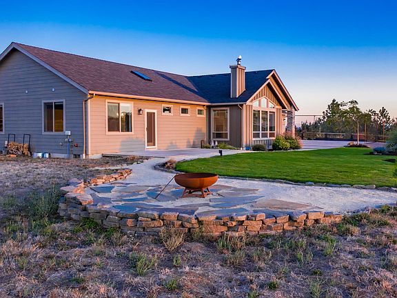 Beautiful single level home with amazing views! 1.82 Acres perched at the top of a hill with views in all directions. Open layout with modern stylish finishes. Large primary bedroom with full tile shower, walk in closet with sauna and private patio. This property has lots of extras with concrete sports court with rebound netting, basketball hoop, inground trampoline, firepit area with view. 30x20 Shed. Generator hookup. RV power hookup. Beautiful sunset views! Dont miss this one!