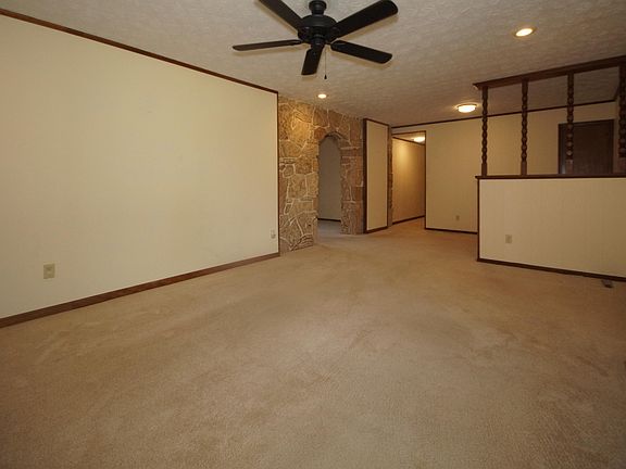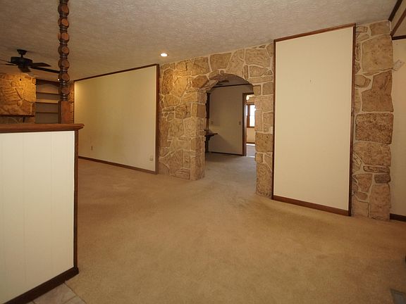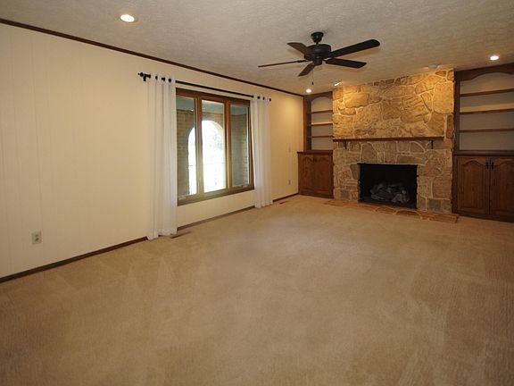 This all brick, 3 bedroom home sits on 5 acres and is set back in a quiet country setting. The spacious living room is complete with a beautiful stone fireplace which is framed nicely with built in shelving and has a unique stone archway which leads you to the sun room and kitchen areas. The sun room offers stunning views of the country scene and lets in plenty of natural light, while the kitchen is close by and is open to the dining area which would be perfect for entertaining guests. A bonus to this property is the tornado shelter which is located in the garage.