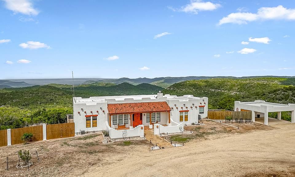 Stunning 531-acre ranch in the "Alps of Texas" with luxury living, top-tier amenities, and incredible views. The 3 bed 2 bath adobe-style main home features a spacious living room with fireplace, large kitchen, office, oversized master suite, and a covered back porch with sweeping vistas. A 2 bed, 2 bath guest house and a clean mobile home for a foreman provide additional accommodations. Enjoy a hilltop cabin with outdoor bar and firepit for entertaining. Ranch improvements include a large metal barn/workshop with covered equipment parking, hay barn, two water wells, and perimeter/cross fencing. There is approximately 100 acres of the ranch that is high fenced. Providing an excellent place to manage your wildlife herd. Loaded with wildlife including whitetail, axis, fallow, oryx, blackbuck, and aoudad. The game coupled with 8 corn feeders, 4 protein feeders, 4 hunting blinds, 6 water troughs and numerous springs spread throughout the property, make this a premier hunting destination. Located just 50 min from Uvalde, 1 hr 20 min from Kerrville, and 2 hrs from San Antonio.