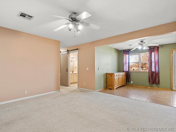 This 3 Bedroom, 1.5 Bath home sits on 2.3 Acres just north of Dewey along Highway 75. Outside amenities include: Horse Access, Livestock, 3 small Barns, Storm Shelter, Garden area and Electric RV Hook Up. Separate fencing for dogs and larger animals. Inside amenities include: two updated Bathrooms (full bathroom upgrade includes a walk in shower with two shower heads), new Granite Kitchen Counter Tops, and a Formal Dining area/2nd Living Area. The large Enclosed Breezeway connecting the home to the garage can be used for many different possibilities.
