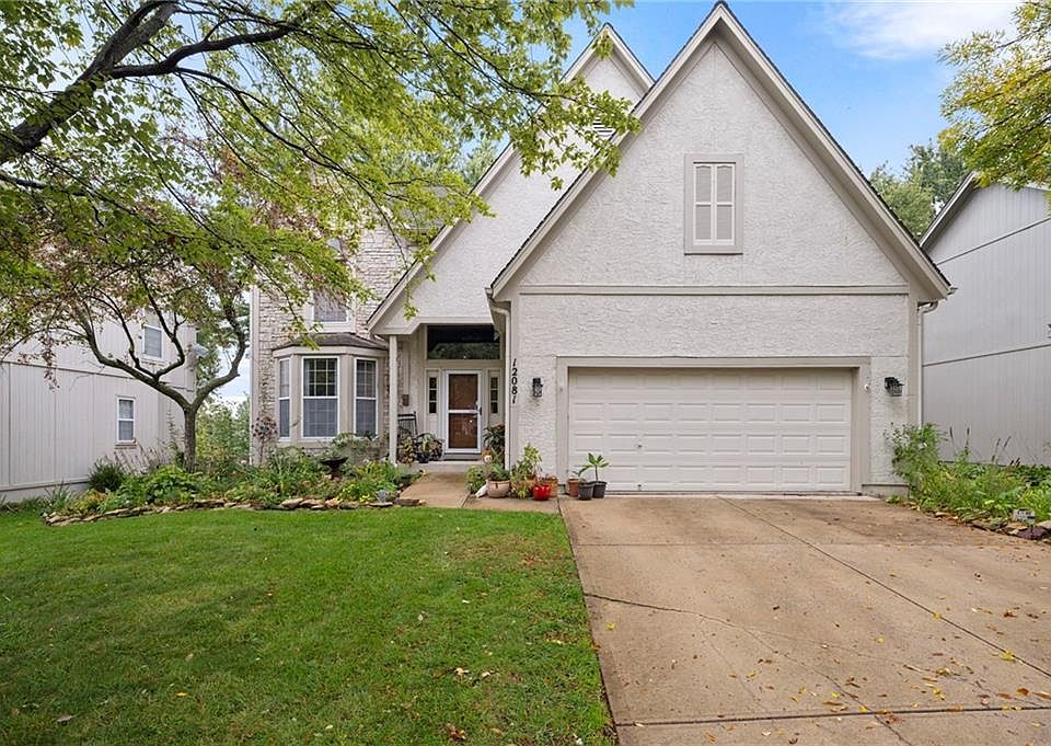 Nestled in the highly sought-after Heatherstone subdivision in Olathe, this charming stone and stucco home backs to lush greenspace and showcases a peaceful cottage garden setting. A lit walkway leads to the welcoming covered front porch and full-glass storm door, opening to a light-filled two-story foyer with sidelight windows. Gleaming wood floors flow through the main living areas, creating warmth and continuity. To the left of the foyer, the formal dining room connects seamlessly to the kitchen, while the great room straight ahead offers a wall of windows overlooking the private backyard and multi-tier deck—perfect for relaxing or entertaining outdoors. The kitchen features stained concrete countertops, a live-edge breakfast bar, sleek black cabinetry, black appliances, and under-cabinet lighting. A breakfast area with deck access and a nearby mudroom hall with a half bath add convenience. Upstairs, the spacious owner’s suite impresses with a step ceiling, ceiling fan, and adjoining office or sitting room. The en suite bath includes a jetted tub, separate shower, double vanity, and walk-in closet. Two additional bedrooms share a tiled hall bath, and the laundry room is conveniently nearby. The daylight lower level includes a family room, full bath with shower, and a bedroom featuring a hidden bookshelf door that opens to storage. Located within the award-winning Olathe School District, this home is part of an active, friendly neighborhood known for community spirit and beautiful surroundings—an ideal place to call home.
