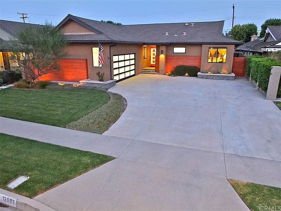 12082 Reagan St ... an exquisitely renovated home of sophistication, style, natural warmth, and casual elegance ... boasting glass-walled serenity, dramatic skylights, and gallery lighting, plus 3 fireplaces, including the poolside fire pit enjoyed from the spa and sheltered entertaining plaza and bar/party center affording indoor/outdoor living "second to none"! A sky-lit galleria living room extends to a stunning built-in office with a view through the glass-walled fireside family room opening to the outdoor lounging plaza and pool. Showcase quality ... the gourmet kitchen is amazing ... including a charming dining setting. Each of the bathrooms are illuminated by unique custom lighting, and both of the bathrooms are distinctive, one with glass door access to the pool and grounds. The primary bedroom suite includes a luxurious private bathroom. The garage is the ultimate in quality & convenience ... Ideal as an incredible sports bar/hideaway. This home is a masterpiece creation of feng shui by renowned designer Janice Sugita ... as is the resort-like rear grounds in a collaboration with master builder Eddie Kesky. Truly a "one of a kind" property and lifestyle opportunity ... in Rossmoor Highlands.