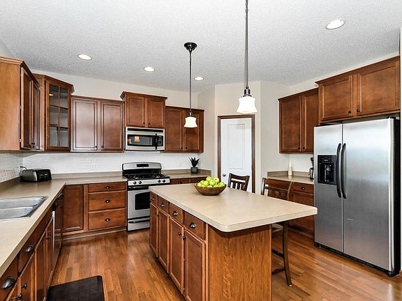 Priced to sell, this beautiful home is on a picturesque pond in preferred Martin Farms neighborhood, with a shared community pool & park! Features home theater (screen and electronics incl), gourmet kitchen, SS & gas appl, walk-in pantry, updated light fixtures; fireplace, laundry & den on ML; heated/insul garage with extended work area, sprink sys, secur sys, finished LL with 4th BA rough-in, spacious deck & front porch.