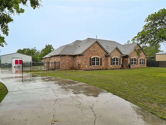 Highest and best offer is due by Sunday May 7th at 5 PM. Gorgeous home that sits on over an acre in Choctaw! Stunning lot with extra concrete that leads to a 30 x 50 shop. When you walk in the front door you'll be pleased with all the amenities! This home boast a study/4th bd, formal dining room, & large living area. The Living Room has a beautiful fireplace, & with the flip of a switch you have fire! Kitchen is spacious with knotty, alder woodwork, crown molding, granite, countertops, & stainless steel appliances. The pantry can be accessed from the garage. Really smart design! Master bedroom is oversized & has a walk-in travertine shower, and three vanities! the other two bedrooms are spacious with walk-in closets and a beautiful bath in between. This home features a storm shelter,full sprinkler system, generator, heater in the third car garage and in the shop, tankless hot water heater, water softener, so many amenities! Don't miss out on this beauty close to Tinker Air Force Base.