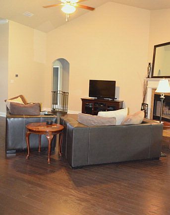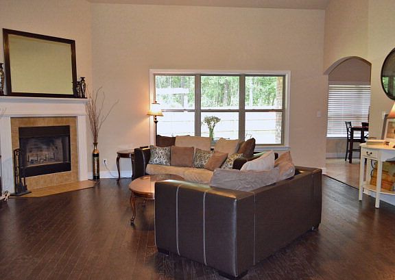 This beautiful (Preston Floor Plan) brick home features: an open floor plan, bonus room over the garage which could serve as 4th bedroom,includes granite counter tops,backsplash in kitchen, ceramic tile , hardwood floors, carpet, cased windows, trey ceilings, recessed lighting, woodburning fireplace, storage building, fenced back yard and covered back patio.