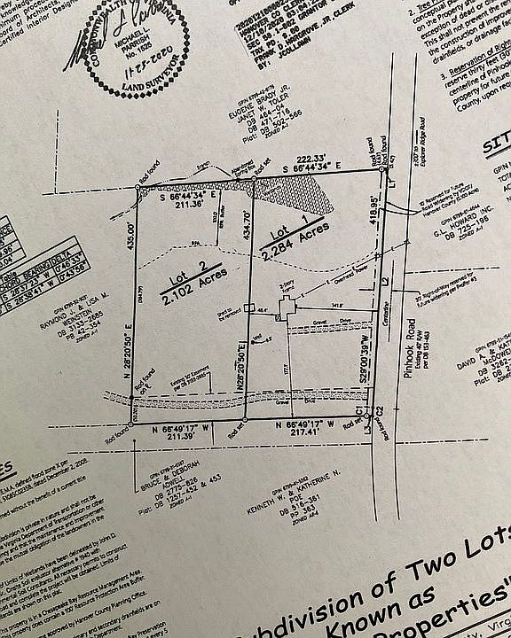 Beautiful 2.284 acre lot with 418 feet fronting on Pinhook Road. Soil report Gravity Flow, Conventional, Four Bedrooms. No HOA. (Old Farmhouse non livable, does have electricity, well and septic)
